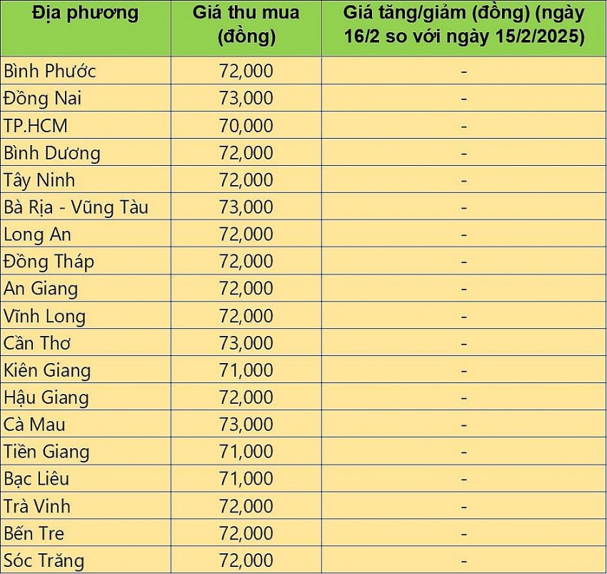 Tương tự với 2 khu vực trên, giá heo hơi tại khu vực miền Nam hôm nay (16/2/2025) ghi nhận chững lại khi ngày hôm qua có sự tăng mạnh tại các tỉnh thành.