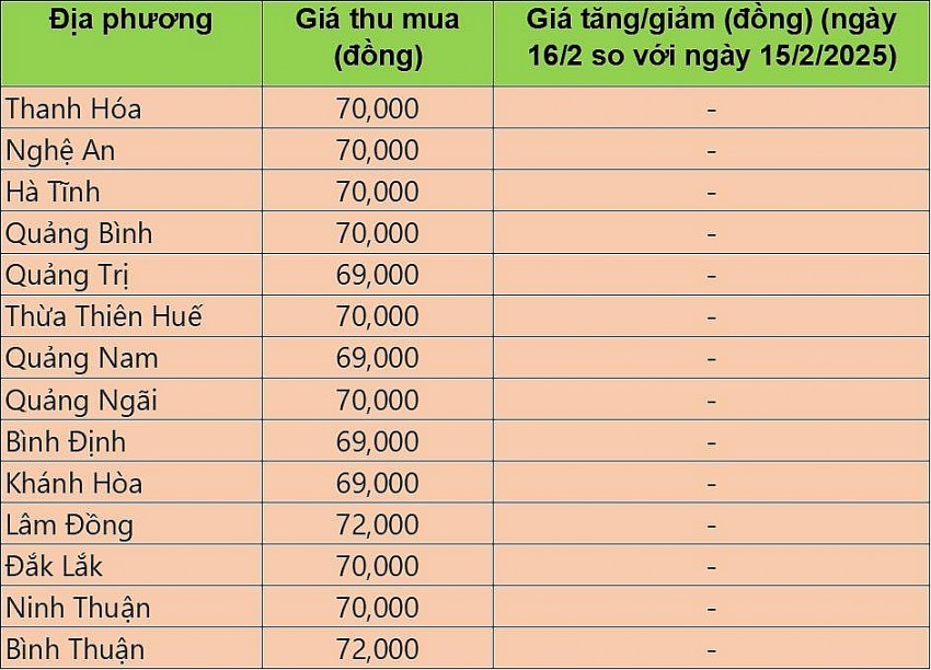 Giá heo hơi hôm nay (16/2/2025) tại khu vực miền Trung - Tây Nguyên ghi nhận đứng giá sau một ngày tăng từ 1.000 đến 2.000 đồng/kg tại tỉnh thành.