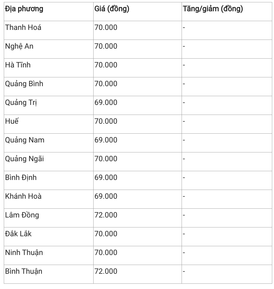 Hiện, giá heo hơi khu vực này dao động trong khoảng 69.000 – 72. 000 đồng/kg. Trong đó, Quảng Trị, Quảng Nam, Khánh Hoà, Bình Định bán heo hơi thấp nhất khu vực với mức 69.000 đồng/kg. Ngược lại, Bình Thuận và Lâm Đồng có giá heo hơi cao nhất khu vực với 72.000 đồng/kg.