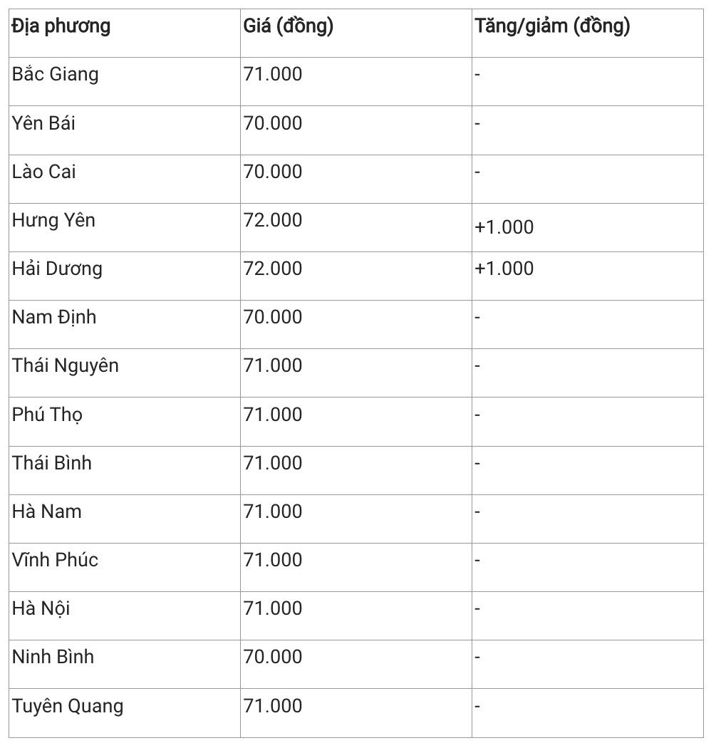 Hiên giá heo hơi khu vực này dao động trong khoảng 70.000 - 71.000 đồng/kg. Trong đó, Yên Bái, Lào Cai, Nam Định và Ninh Bình là những địa phương có giá heo hơi thấp nhất khu vực với mức 70.000 đồng/kg.