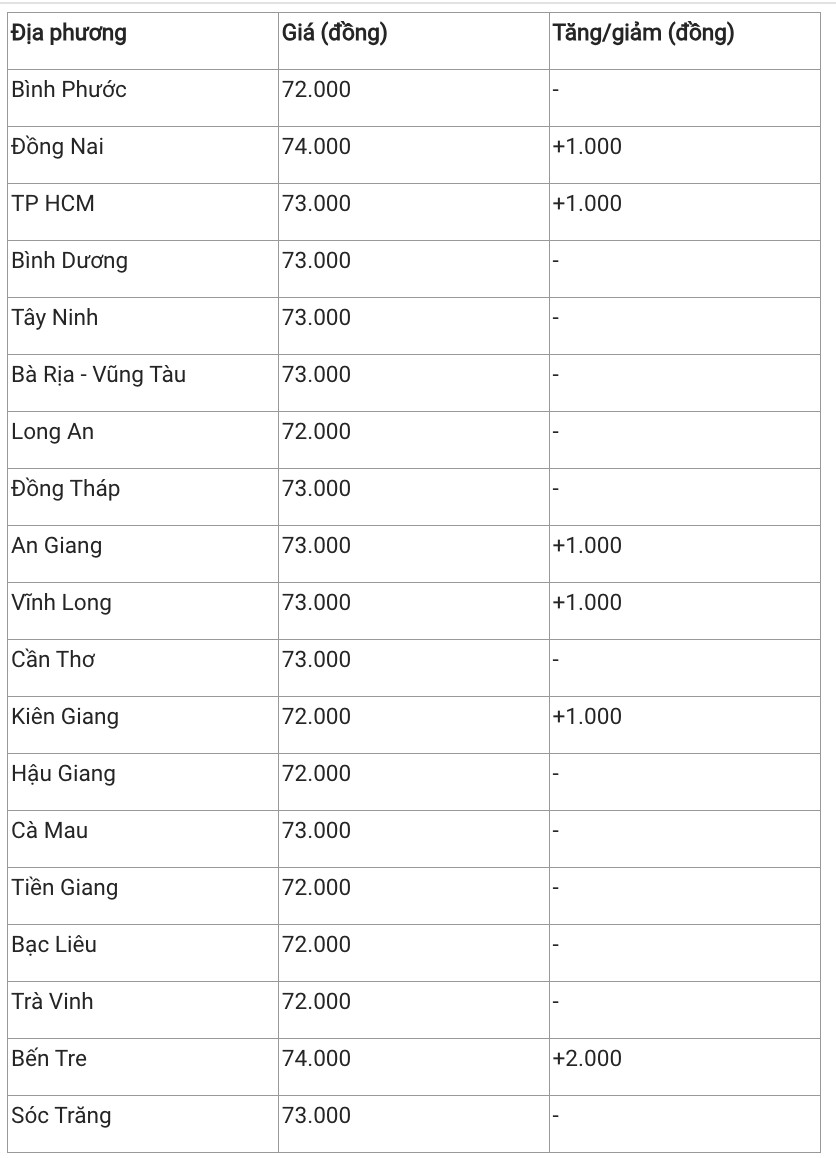 Hiện giá heo hơi khu vực này vẫn duy trì dao động 70.000 – 74.000 đồng/kg. Trong đó, Đồng Nai và Bến Tre thiết lập mức giá cao nhất cả nước với 74.000 đồng/kg. Nhiều địa phương như Bà Rịa – Vũng Tàu, Cần Thơ, Cà Mau, Bình Dương, Tây Ninh, Sóc Trăng có giá cao nhất cả nước với mức 73.000 đồng/kg. Còn các tỉnh thành trong khu vực dao dịch phổ biến trong khoảng 70.000 – 72.000 đồng/kg.