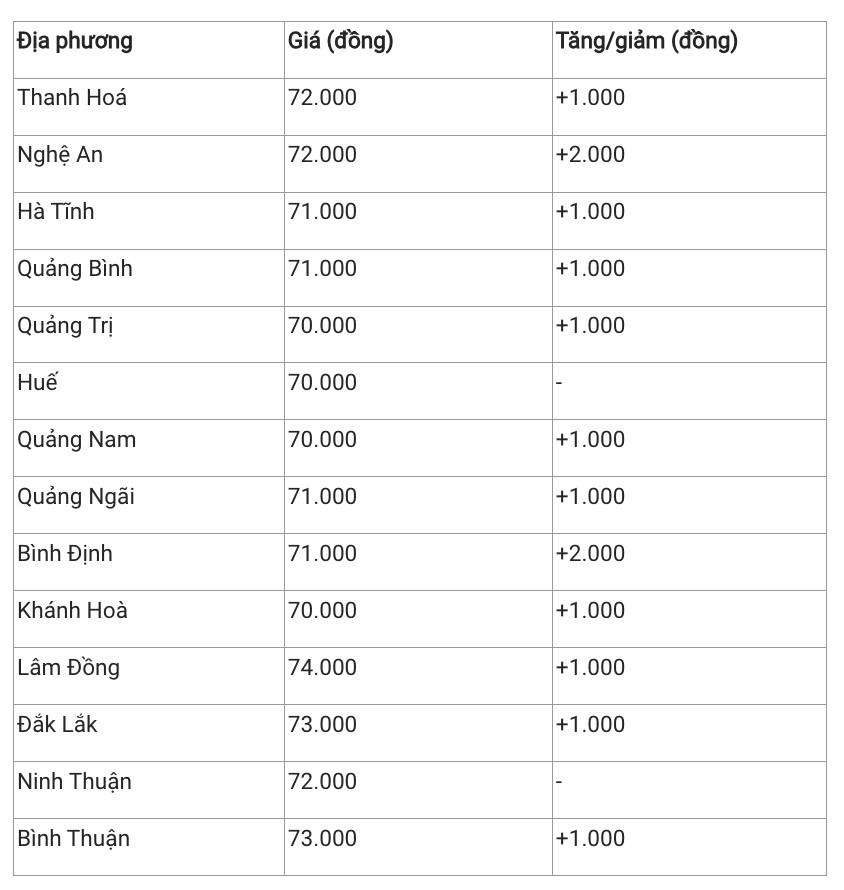 Hiện, giá heo hơi khu vực này dao động trong khoảng 70.000 - 74.000 đồng/kg. Trong đợt tăng giá phiên sáng nay, Lâm Đồng đang là địa phương có giá cao nhất khu vực với 74.000 đồng/kg. Ngược lại, Huế và Quảng Nam bán heo hơi thấp nhất khu vực với mức 70.000 đồng/kg.