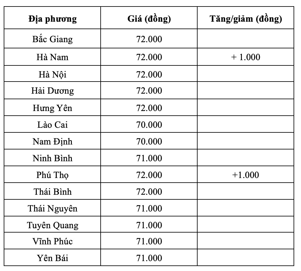 Hiên giá heo hơi khu vực này vẫn duy trì trong khoảng 70.000 - 72.000 đồng/kg. Trong đó. Ngược lại, Lào Cai, Nam Định là hai địa phương có giá heo hơi thấp nhất khu vực với mức 70.000 đồng/kg.