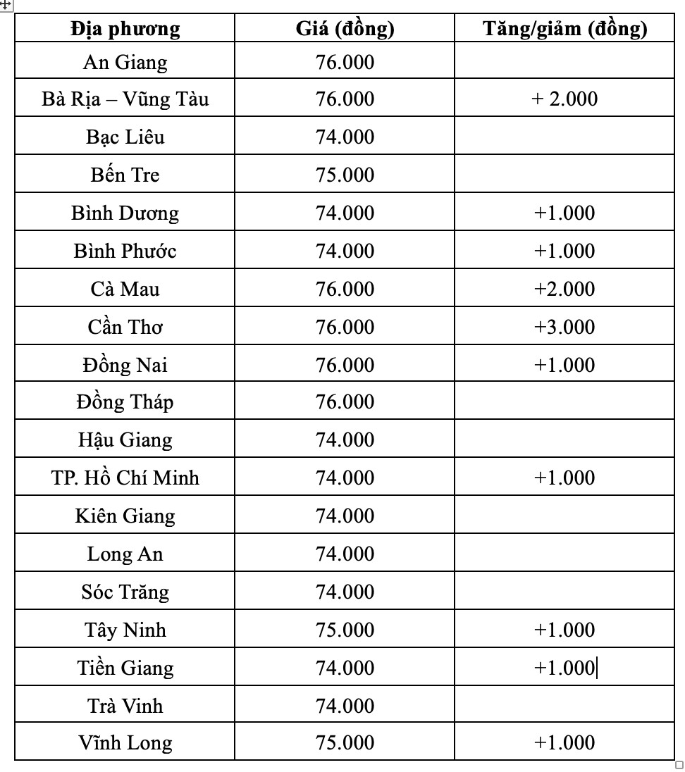 Hiện giá heo hơi khu vực này vẫn duy trì dao động 74.000 – 76.000 đồng/kg. Trong đó, Đồng Nai, Cần Thơ, Đồng Tháp, An Giang, Bà Rịa - Vũng Tàu và Cà Mau cùng đạt 76.000 đồng/kg.