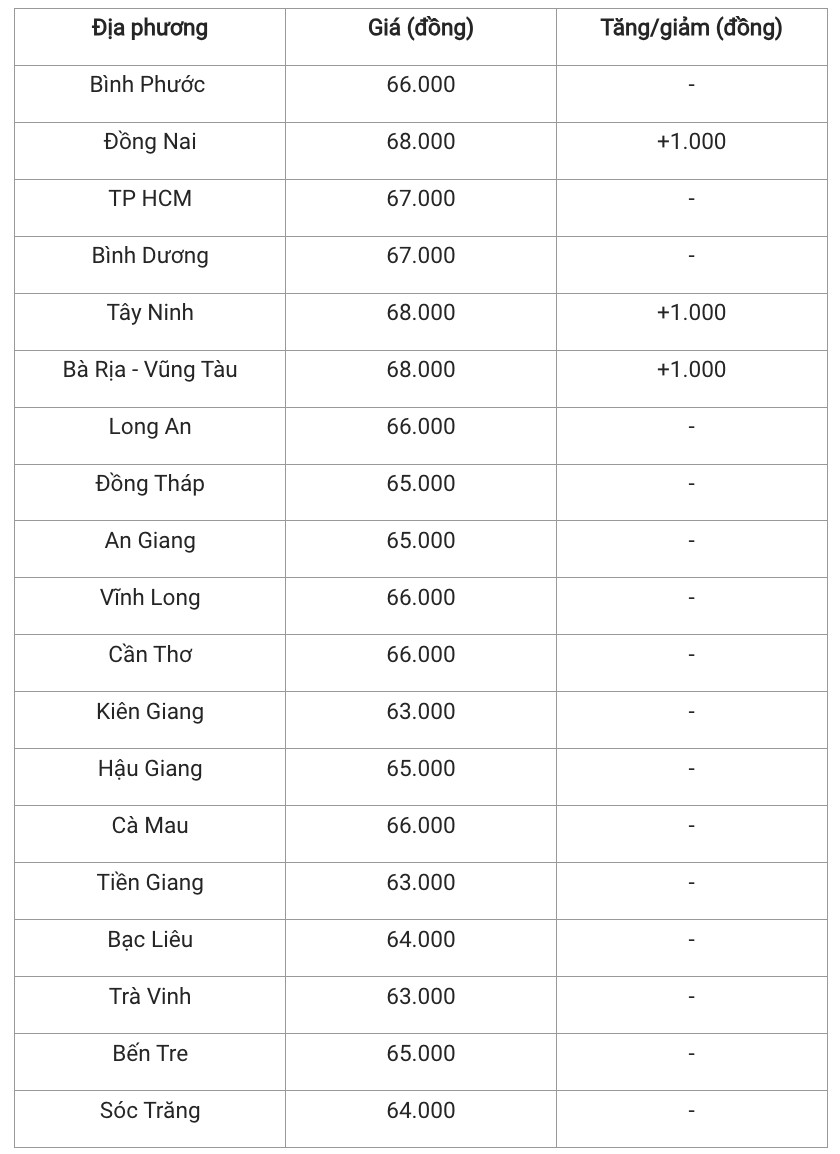 Tương tư, giá heo hơi tại khu vực miền Nam hôm nay (25/12/2024) ghi nhận có sự biến động giá ở Đồng Nai, Tây Ninh và Bà Rịa – Vũng Tàu cùng tăng 1.000 đồng/kg và đạt 68.000 đồng/kg. Đây cũng là giá heo hơi cao nhất khu vực này.