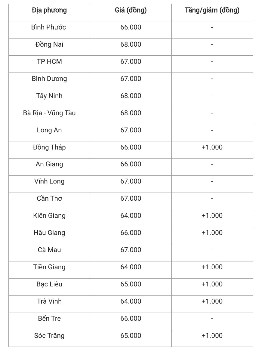 Hiện tại, giá heo hơi khu vực miền Nam đang dao động 64.000 - 68.000 đồng/kg. Trong đó, các tỉnh Kiên Giang, Tiền Giang và Bến Tre vẫn giữ thấp nhất khu vực với giá 63.000 đồng/kg.