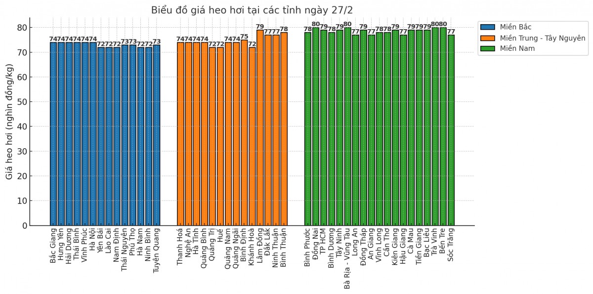 Khu vực miền Bắc: Cao nhất 74.000 đồng/kg