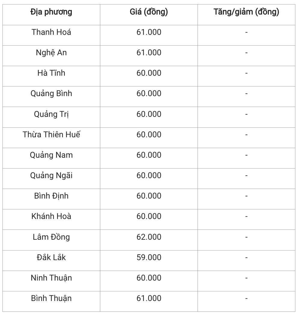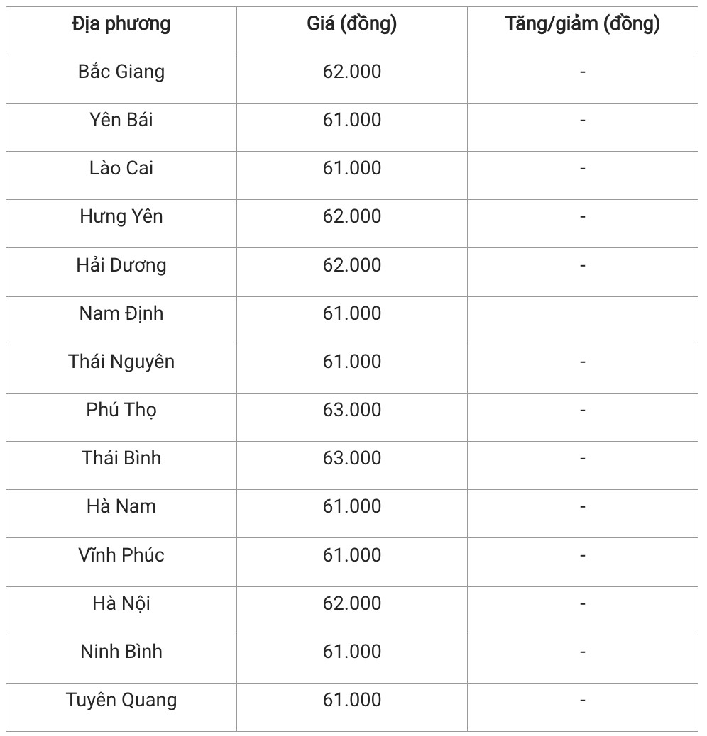 Trong đó, Thái Bình và Phú Thọ đang giao dịch tại mức 63.000 đồng/kg, cao nhất khu vực.