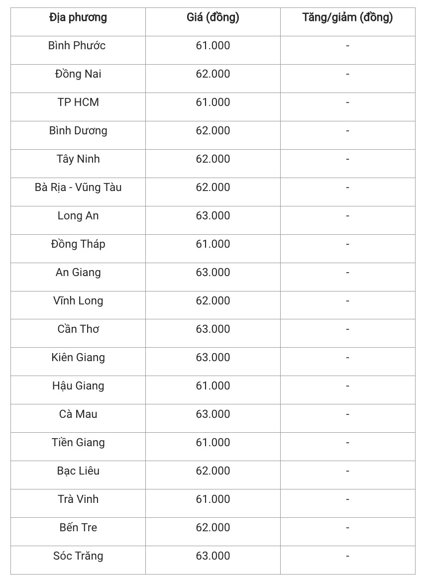 Khu vực miền Nam hôm nay (28/11/2024) giá heo hơi tiếp tục duy trì mức giá từ 61.000 - 63.000 đồng/kg.Trong đó các tỉnh Long An, An Giang, Kiên Giang, Cà Mau, Sóc Trăng và TP. Cần Thơ đang dao động mức cao nhất khu vực với mức 63.000 đồng/kg.
