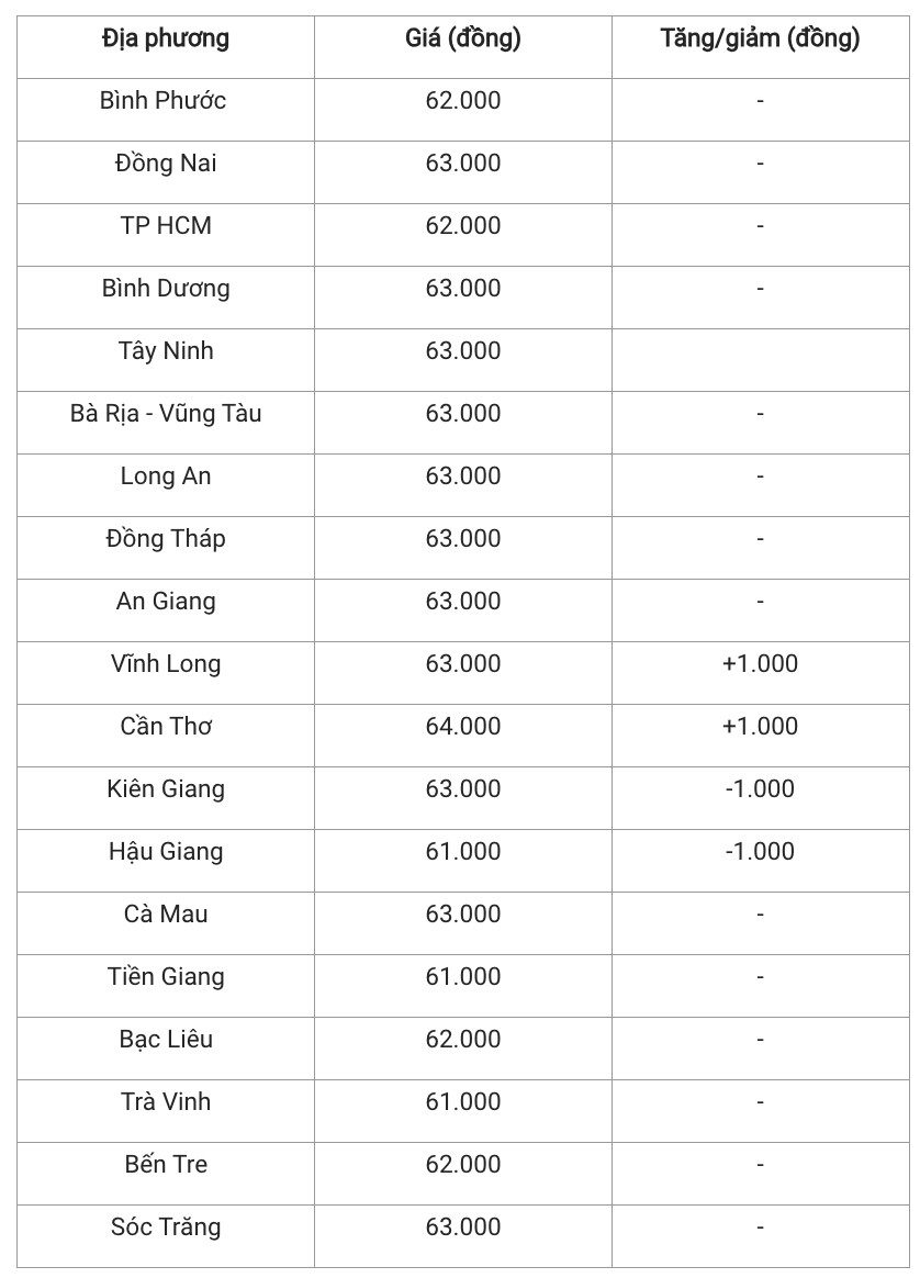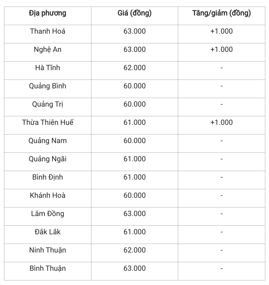 Hiện giá heo hơi tại miền Trung – Tây Nguyên đang dao động từ 60.000 - 63.000 đồng/kg. Thanh Hoá, Nghệ An, Lâm Đồng và Bình Thuận là 4 tỉnh có mức giao dịch cao nhất khu vực, đạt 63.000 đồng/kg.