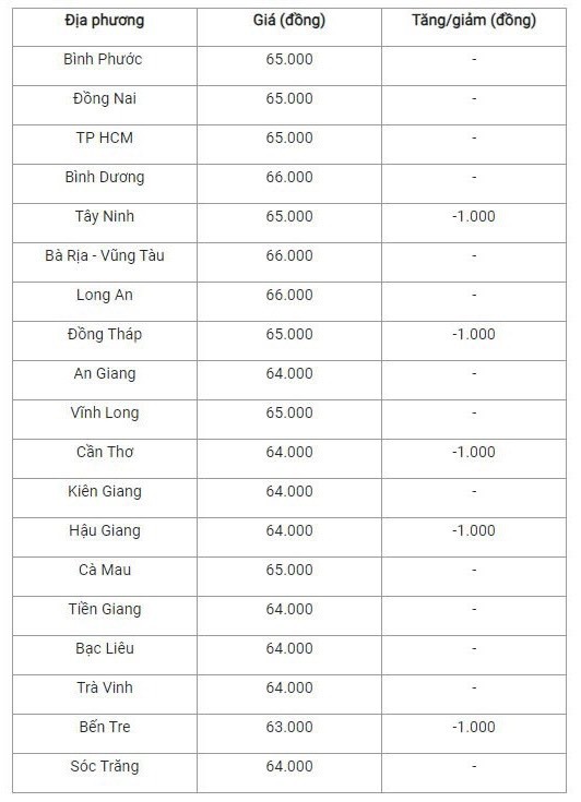 Trong đó Tây Ninh, Đồng Tháp, Cần thơ, Bến Tre, Hậu Giang là các tỉnh, thành phố có giá heo hơi giảm 1.000 đồng/kg. Mốc 63.000 đồng/kg xuất hiện trong khu vực.