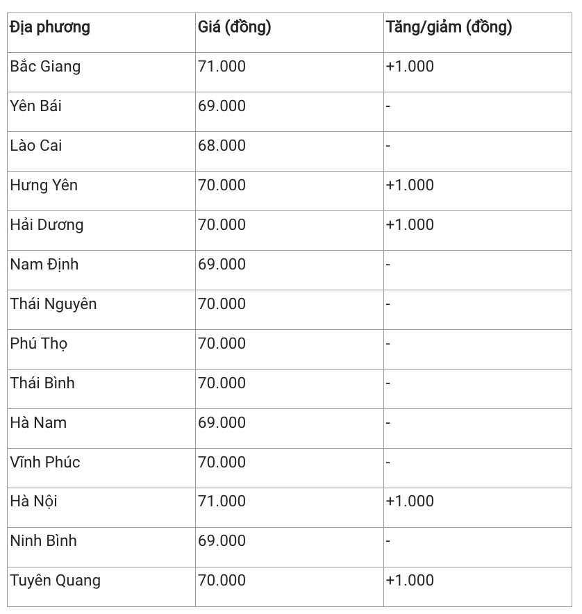 Hiện giá heo hơi khu vực này đang dao động trong khoảng 68.000 - 71.000 đồng/kg. Trong đó, Lào Cai là địa phương duy nhất trong khu vực có giá heo hơi thấp nhất với 68.000 đồng/kg.
