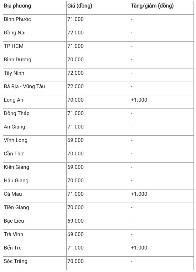 Hiện giá heo hơi khu vực này vẫn duy trì dao động 69.000 – 72.000 đồng/kg. Trong đó, Đồng Nai, Tây Ninh, Bà Rịa - Vũng Tàu là địa phương có mức giá cao nhất cả nước với mức giá 72.000 đồng/kg