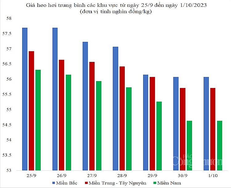 Các địa phương còn lại trong khu vực ghi nhận mức giá 55.000 đồng/kg.