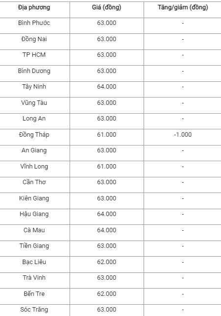 Tại khu vực phía Nam, giá heo hơi hôm nay giảm nhẹ 1.000 đồng/kg tại Đồng Tháp và dao động trong khoảng 61.000 - 64.000 đồng/kg.