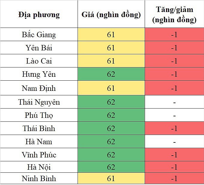 Tương tự, tỉnh Nghệ An giảm 2.000 đồng/kg xuống mốc 60.000 đồng/kg. Mức giá này cũng được ghi nhận tại Hà Tĩnh.