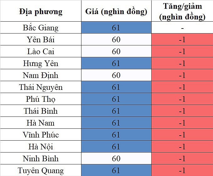 Ngoại trừ tỉnh Bắc Giang giao dịch ổn định, các địa phương còn lại cùng giảm một giá và về mức 61.000 đồng/kg.