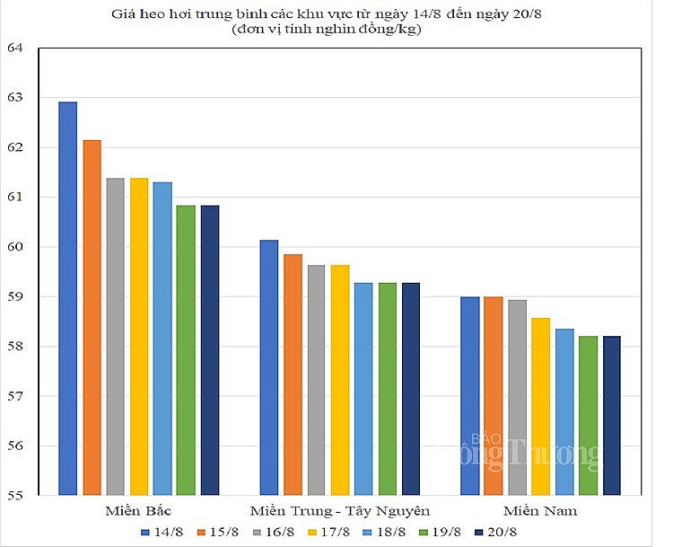Các địa phương khác trong khu vực ghi nhận mức giá 60.000 đồng/kg.