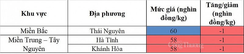 Các địa phương khác không ghi nhận sự biến động mới về giá, trong đó, mức giá thấp nhất khu vực 57.000 đồng/kg được ghi nhận tại Bình Định, Đắk Lắk.