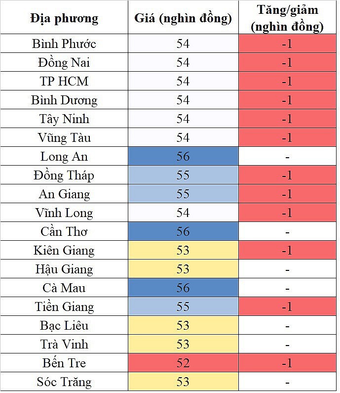 Còn tại Hậu Giang, Trà Vinh, Bạc Liêu ghi nhận mức giá 53.000 đồng/kg.