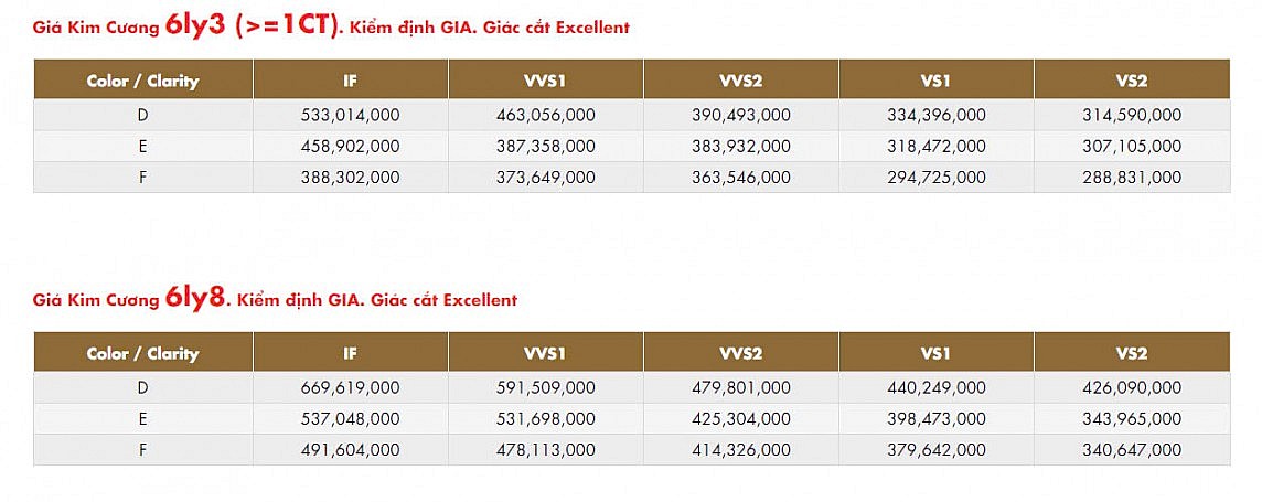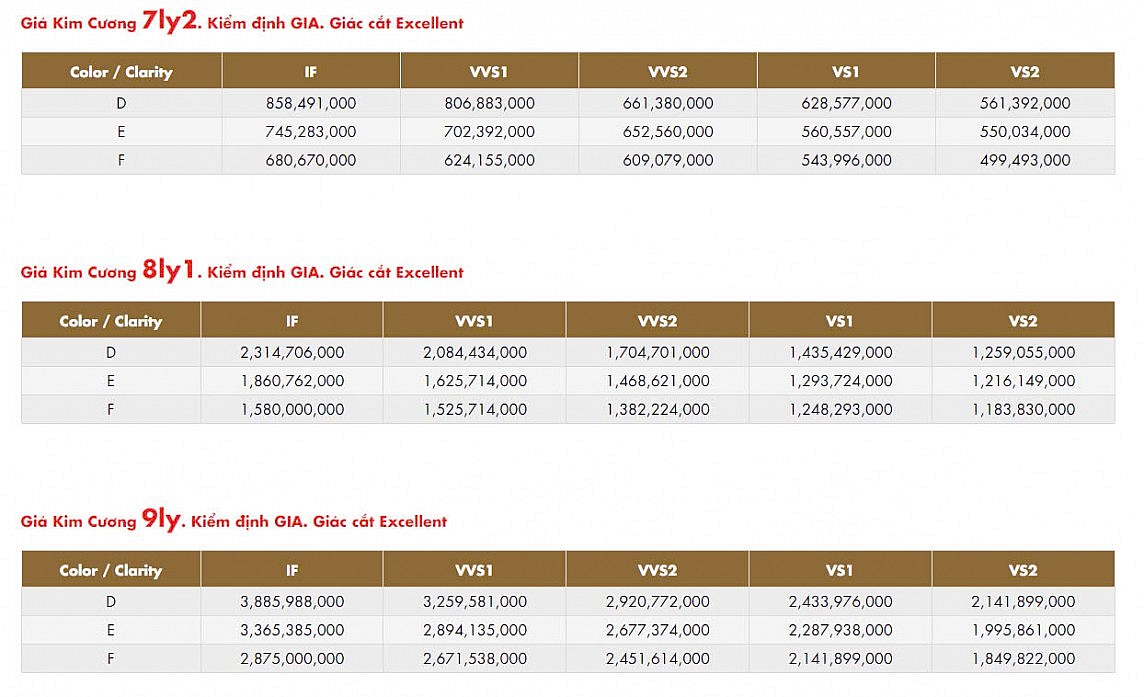 Cập nhật giá kim cương trong nước ngày 23/8/2024