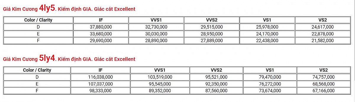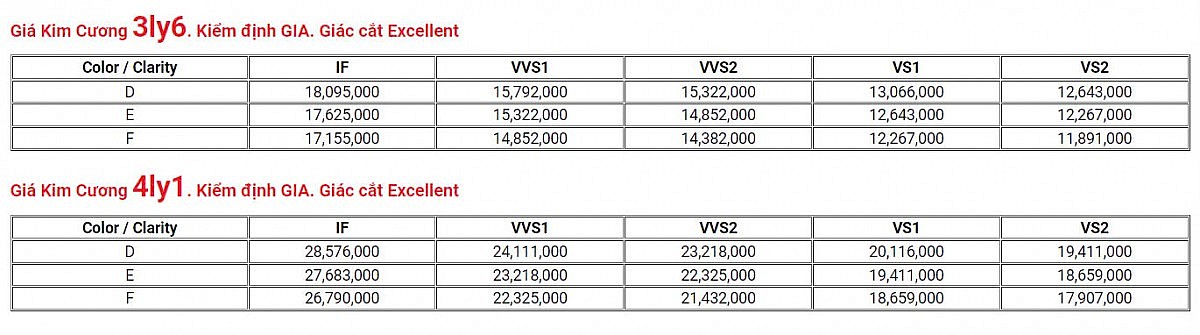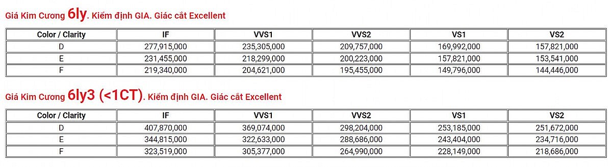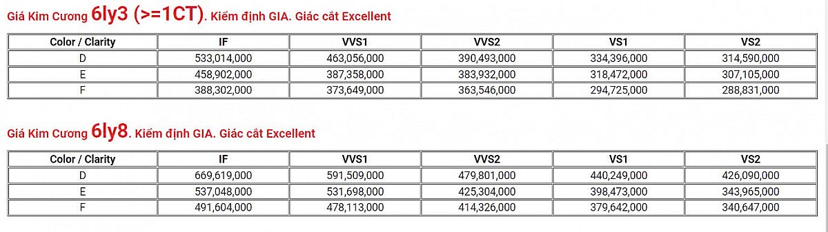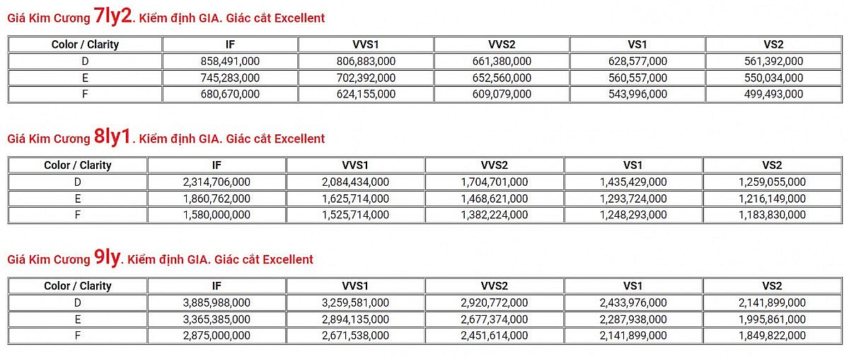 Đến tháng 9, giá trung bình cho mỗi carat của một viên kim cương tròn 1-1,19 carat màu G độ trong VS1 là 5.699 USD so với mức 5.999 USD vào tháng trước. Trung bình cho mỗi carat của kim cương tròn đã giảm 5%.