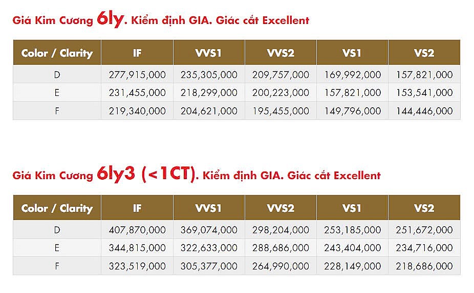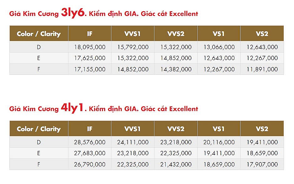 PriceScope - nền tảng dữ liệu theo dõi kim cương toàn cầu - cho hay giá kim cương các loại tiếp tục giảm trong 3 tháng liên tiếp gần đây. Đến tháng 9, giá trung bình cho mỗi carat của một viên kim cương tròn 1 - 1,19 carat màu G độ trong VS1 là 5.699 USD so với mức 5.999 USD vào tháng trước. Trung bình cho mỗi carat của kim cương tròn đã giảm 5%, theo Reuters.