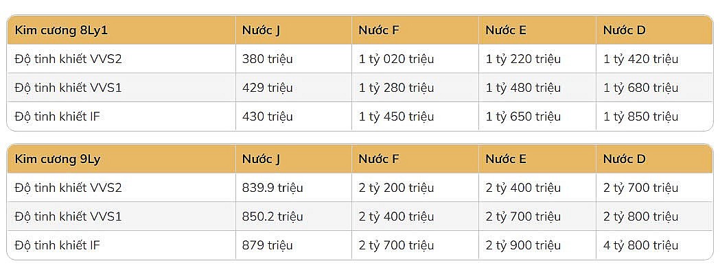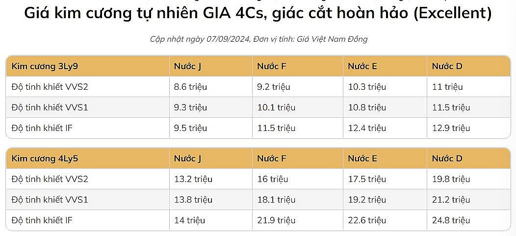Cập nhật giá kim cương trong nước ngày 8/9/2024