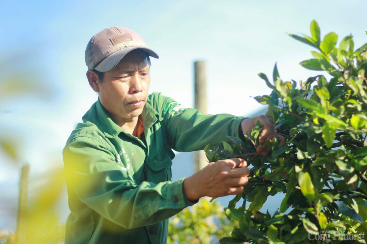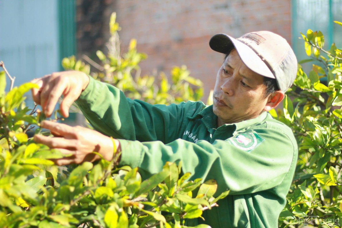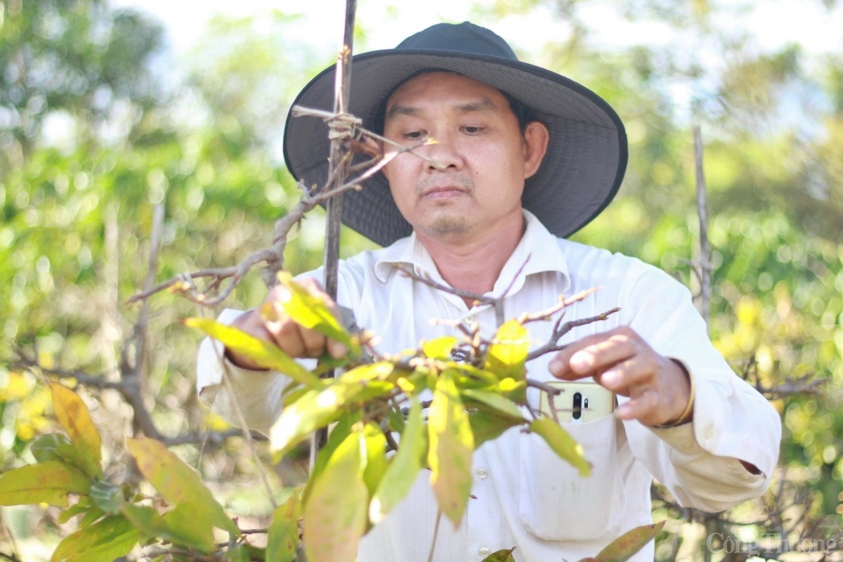 Để cây mai có dáng đẹp, từ nhiều tháng trước, anh Chúng đã uốn nắn lại các cành, cắt tỉa cành phụ để bảo vệ cây khỏi sâu bệnh hại. Anh cũng bón phân hữu cơ cho cây đều đặn mỗi tháng một lần, giữa năm bón thêm phân kali để cung cấp dinh dưỡng giúp cây đậu hoa nhiều.