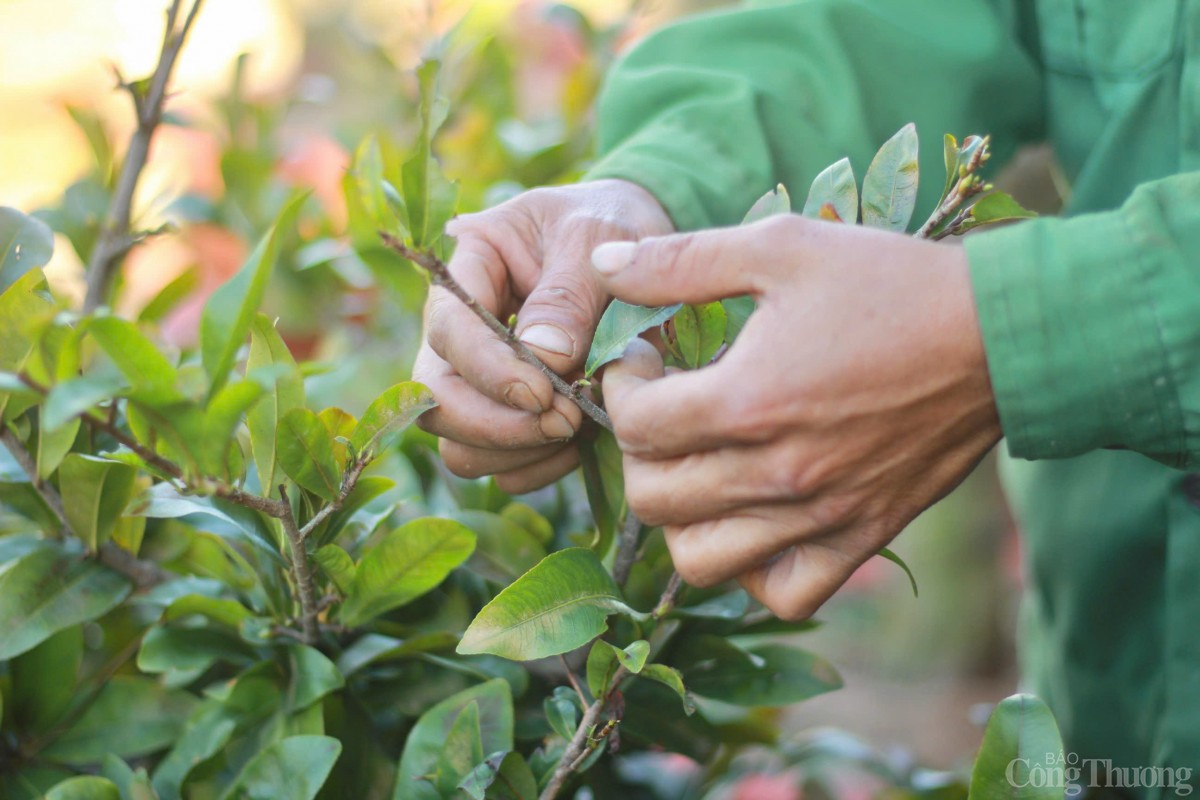 | Để có những cây đẹp, ra hoa đúng dịp Tết, tùy vào từng loại cây, nhà vườn sẽ chọn thời điểm tuốt lá khác nhau |