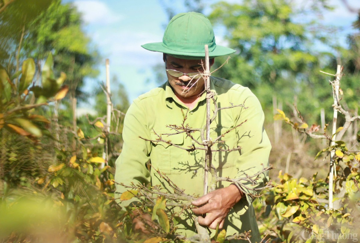 "Công việc lặt lá mai tưởng chừng đơn giản và không nặng nhọc, song nếu không khéo léo dễ làm hư cành cũng như chạm phải nụ hoa chưa kịp bung trổ. Vì thế, khi lặt lá mai phải cẩn thận từng lá, không nắm hoặc bứt cả chùm. Vào thời gian lặt lá cao điểm, tôi phải thuê khoảng 10 nhân công lặt lá mai, với tiền công giao động từ 300.000 - 500.000 đồng/người/ngày", anh Chúng chia sẻ.