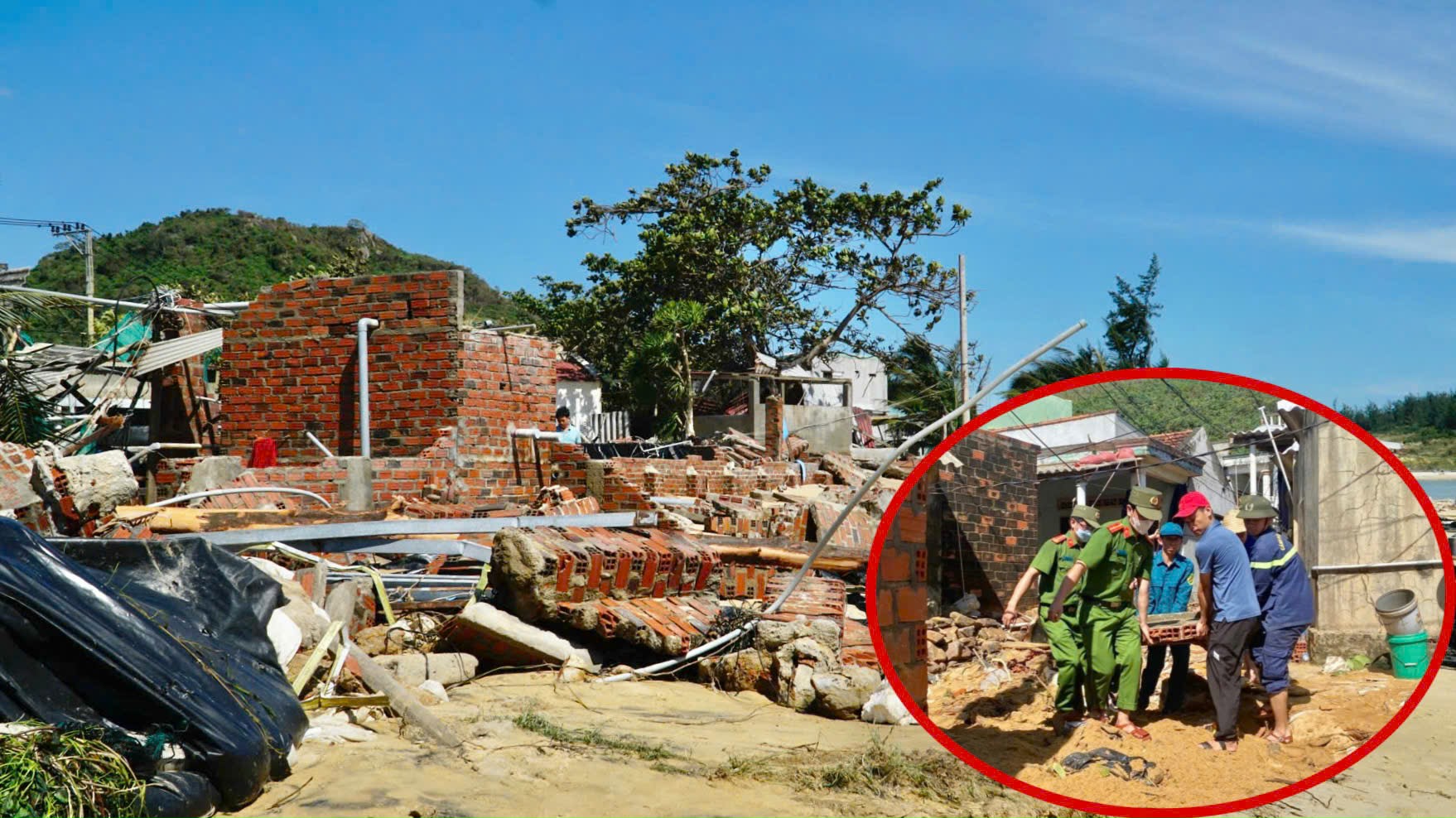 Tại làng chài Đề Gi (xã Đề Gi), nơi gió biển quanh năm thổi ràn rạt, sáng nay yên ắng lạ thường. Chỉ có tiếng xẻng, tiếng xô cào vang lên giữa những đống cát cao hơn nửa người. Nhà cửa bị vùi, tàu thuyền gãy nát, những người đàn ông từng ngang dọc khơi xa giờ ngồi bó gối giữa sân nhà trống hoác.
