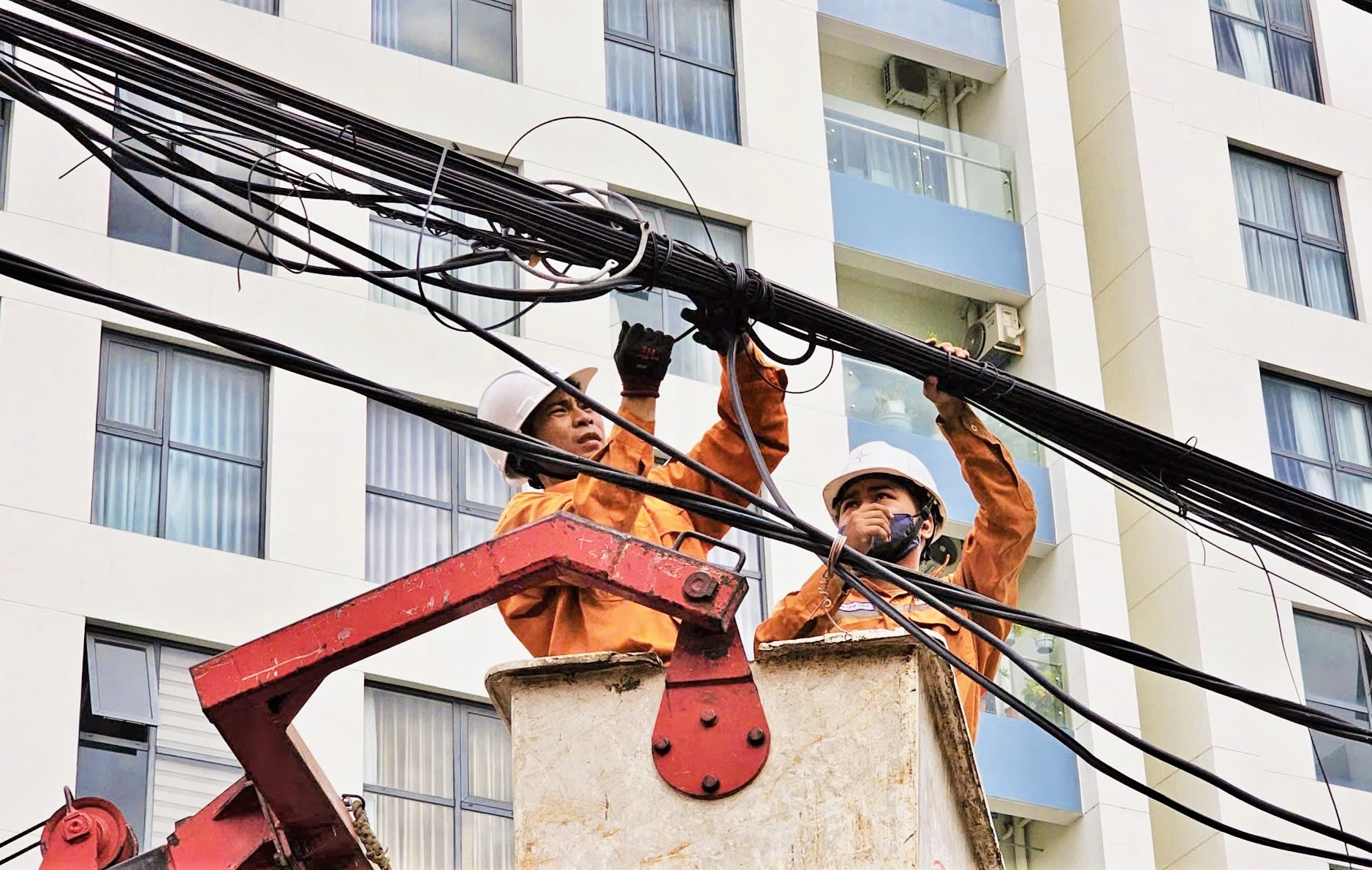 Những "người lính áo cam" miệt mài khắc phục hệ thống điện.
