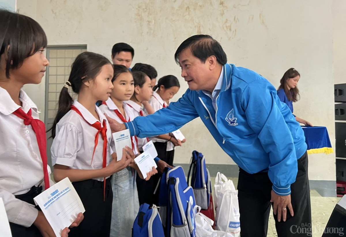 | Ông Nguyễn Ngọc Lương - Phó Bí thư Tỉnh ủy trao các suất học bổng cho học sinh. |