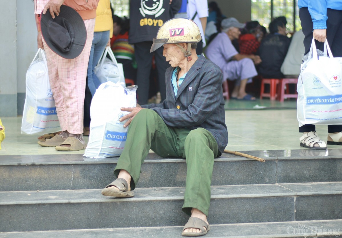 | Nhiều cụ già ngồi chờ tới lượt được nhận quà hỗ trợ. |