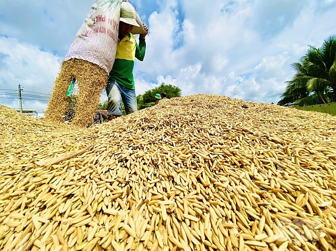 Theo các thương lái, hiện giá lúa Thu đông đang ở mức cao hơn từ 200-400 đồng/kg so với hồi đầu vụ (tức thời điểm cuối tháng 9/2021).