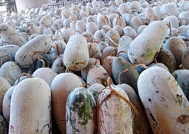 | Không chỉ cây gừng, một sản phẩm nông sản chủ lực khác ở biên giới Kỳ Sơn là quả bí xanh cũng chịu chung số phận khi đầu ra không ổn định, giá cả lên xuống thất thường |