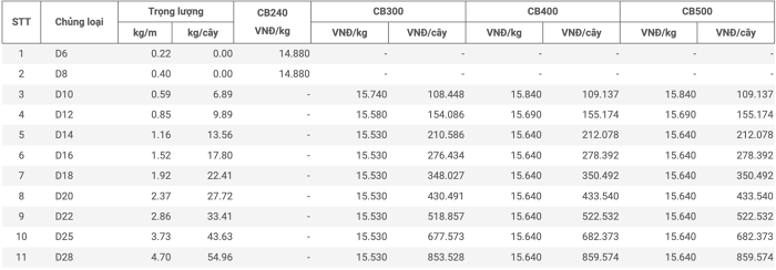 Cùng xu hướng, thép Việt Mỹ hạ giá bán sản phẩm thép cuộn CB240 và D10 CB300 tại khu vực miền Trung với mức giảm lần lượt là 300.000 đồng/tấn và 400.000 đồng/tấn, giá bán còn 14,75 triệu đồng/tấn và 15,1 triệu đồng/tấn.