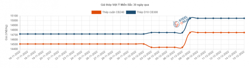 Thương hiệu thép Việt Ý, hiện thép cuộn CB240 ở mức 14.750 đồng/kg; dòng thép thanh vằn D10 CB300 có giá 15.050 đồng/kg.