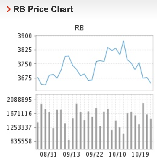 | Biểu đồ giá quặng sắt trên Sàn giao dịch Thượng Hải |