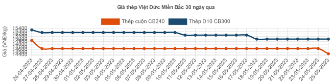 | Diễn biến giá thép Việt miền Bắc 30 ngày qua |