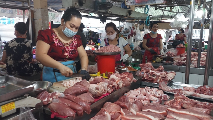 Trong khi giá rau củ ổn định, giá nhiều mặt hàng thực phẩm như thịt heo, thịt gà… có xu hướng tăng lên. Tại An Giang, giá thịt heo cũng tăng 5.000 đồng/kg lên mức 135.000 - 140.000 đồng với thịt đùi; thịt ba rọi 140.000 – 145.000 đồng/kg; thịt heo nạc 145.000 -150.000 đồng/kg. Tại các chợ lẻ TP. Hồ Chí Minh, giá thịt heo cũng tăng khoảng 3.000 -5.000 đồng/kg lên mức 160.000 - 180.000 đồng/kg mỗi loại. Công ty Quản lý và Kinh doanh chợ Bình Điền, TP. Hồ Chí Minh dự báo, giá thịt heo vào lúc cao điểm nhất dịp tết Tân Sửu 2021 có thể tăng từ 10% đến 40% so với thường ngày.