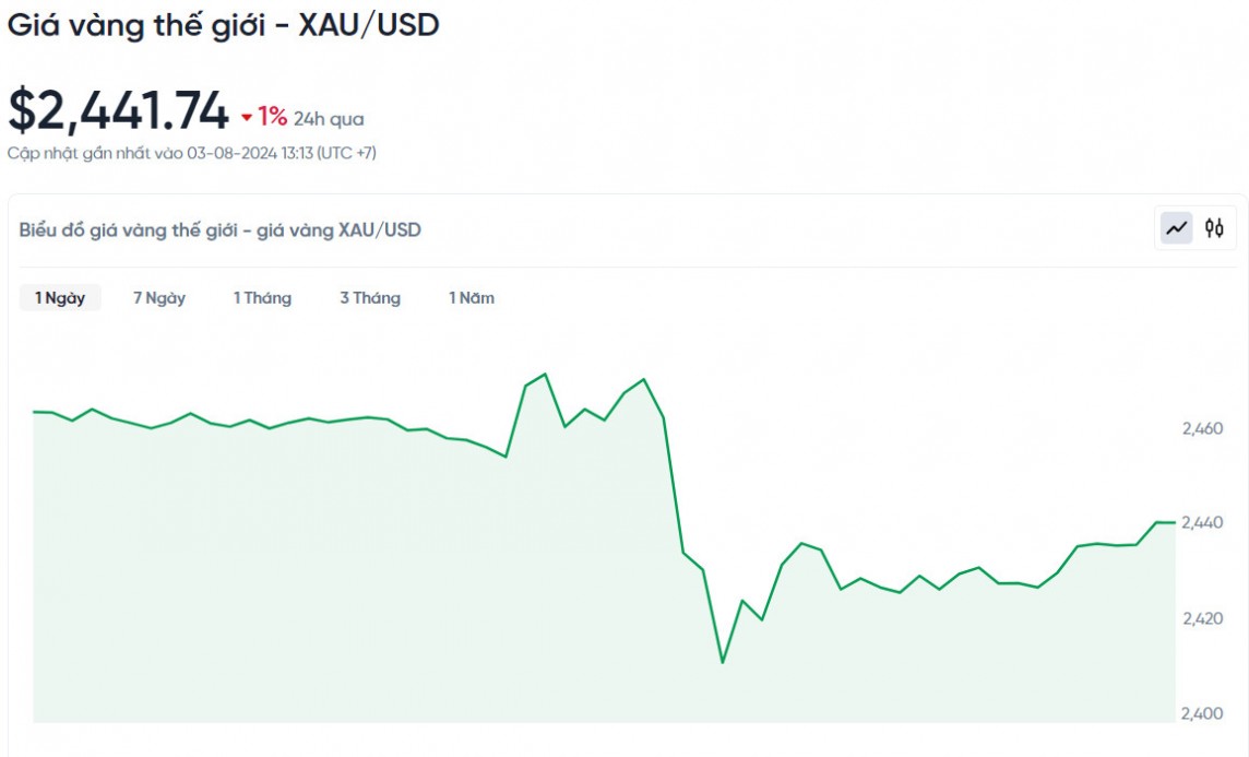 Giá vàng thế giới chiều ngày 3/8/2024 và biểu đồ biến động giá vàng thế giới 24h qua
