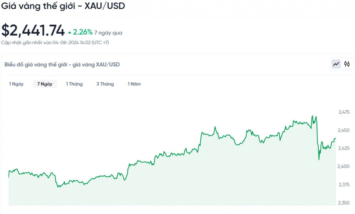 Giá vàng thế giới chiều nay 4/8/2024 và biểu đồ biến động giá vàng thế giới 24h qua