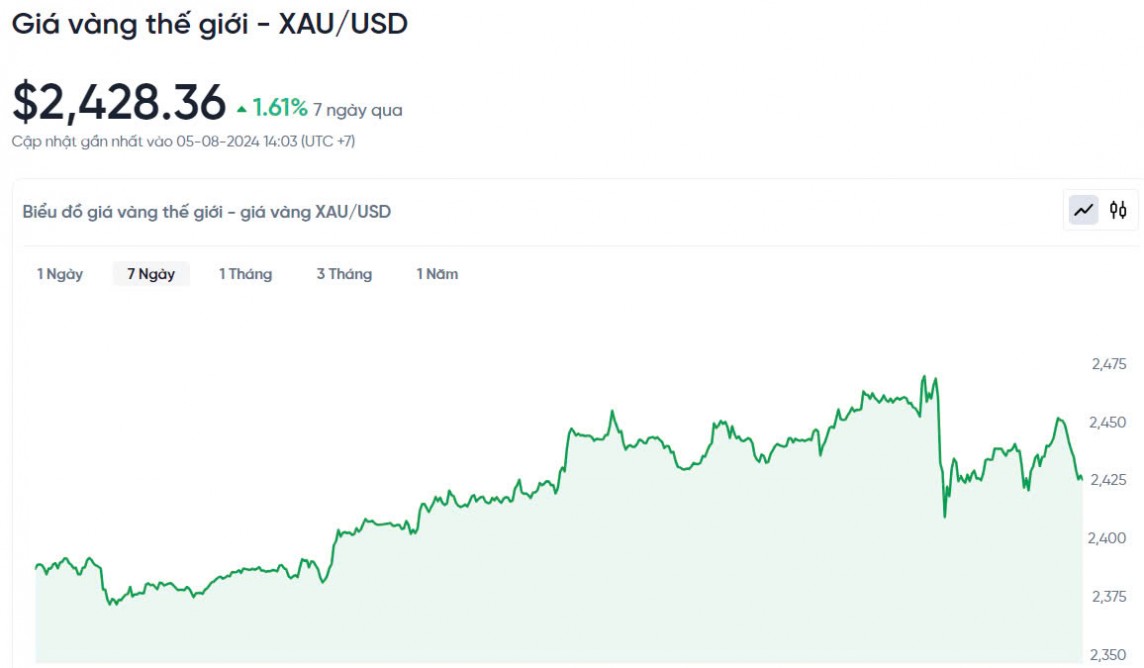 Giá vàng thế giới chiều hôm nay 5/8/2024 và biểu đồ biến động giá vàng thế giới 24h qua