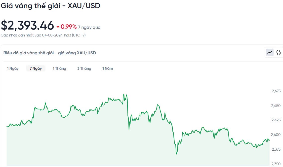 Giá vàng thế giới chiều hôm nay 7/8/2024 và biểu đồ biến động giá vàng thế giới 24h qua