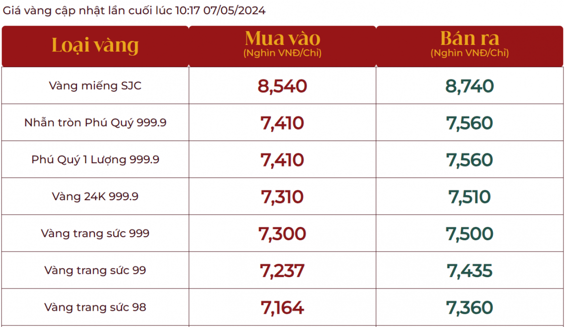 | Giá vàng giao dịch tại Tập đoàn Phú Quý |