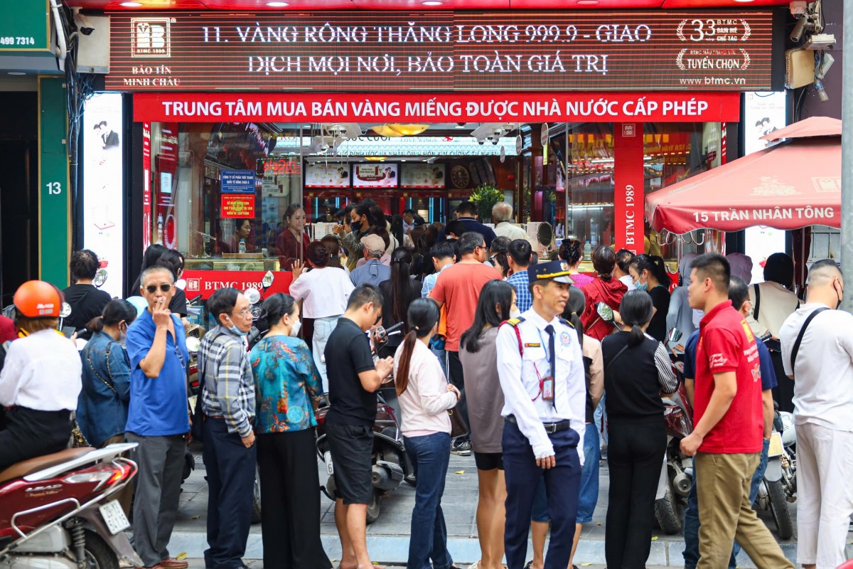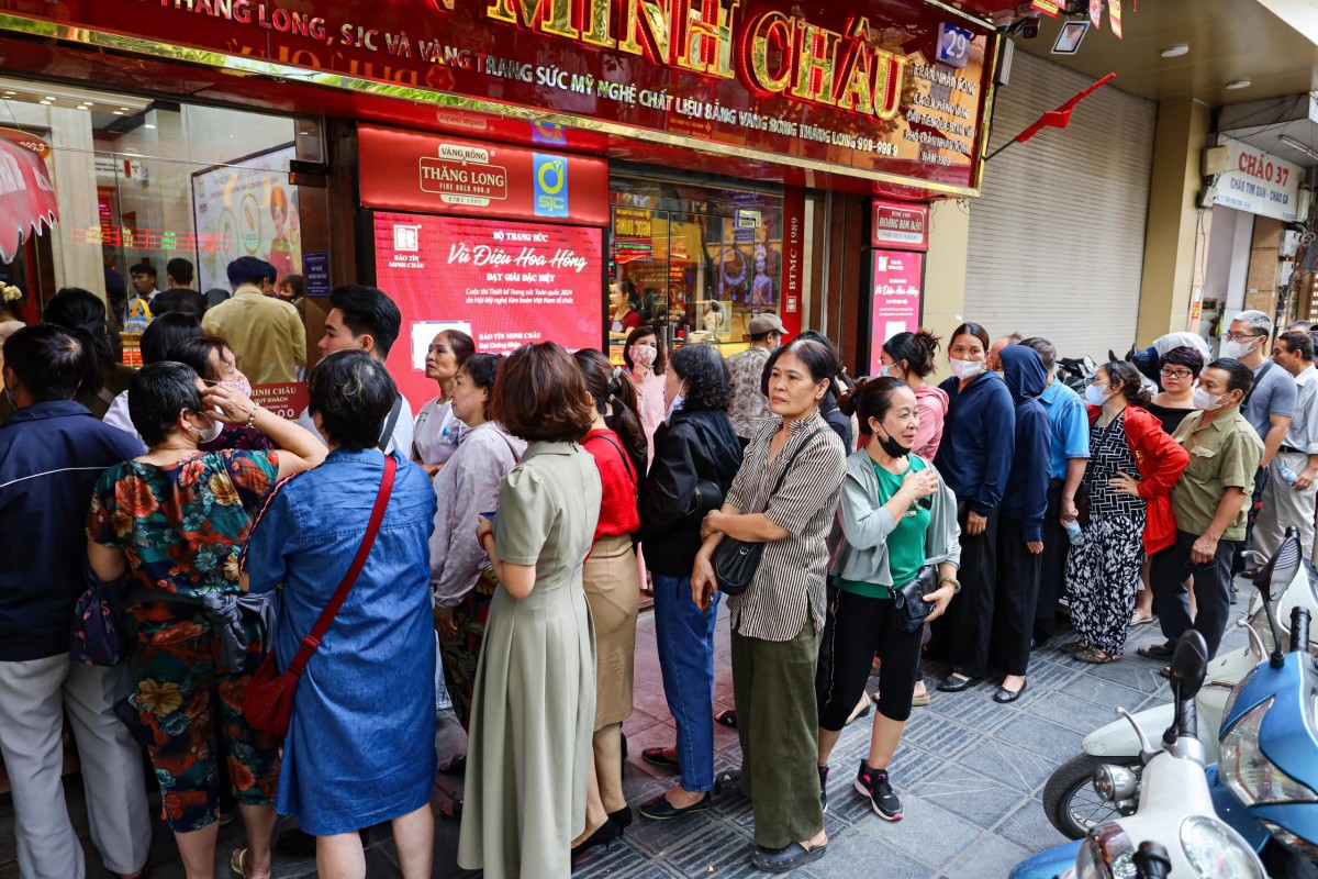 | Người dân "ùn ùn" đi mua vàng trong bối cảnh giá vàng tăng mạnh. Ảnh: Hoàng Quyên |