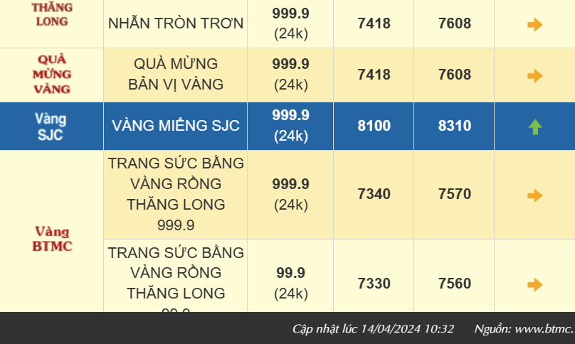 Giá vàng giao dịch tại Bảo Tín Mạnh Hải