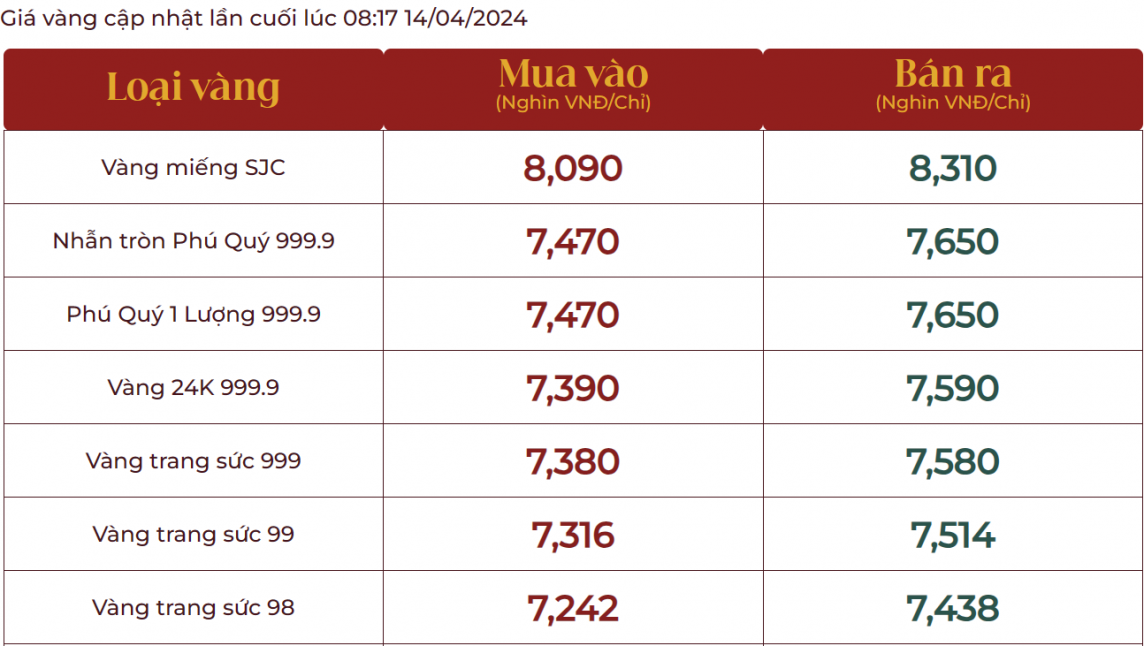 Giá vàng giao dịch tại Tập đoàn Phú Quý
